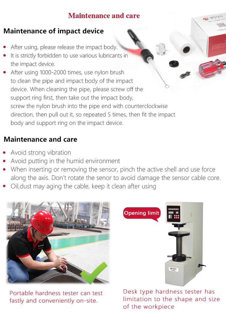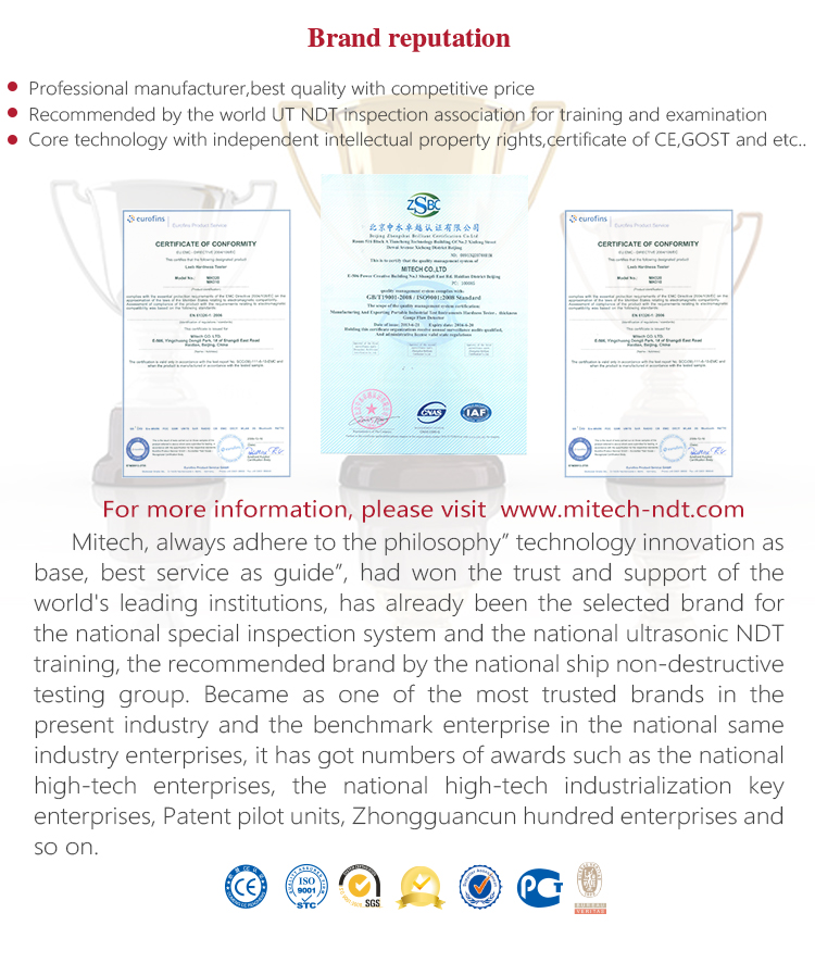 | Mitech Series portable leeb hardness testers with customized attached files including product certificate, warranty card, product manual, packing list. The attached files adopt the special printed paper. The manual is with graphic design, beautiful, easy to understand, easy to save for a long time. Note: The electronic version of Mitech attached files can be downloaded from m.jiu1915.cn. |