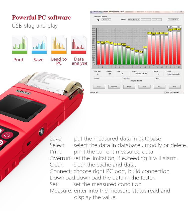 | The USB communication cable for Mitech hardness tester is used to connect the PC with the main unit to realize the applciations of computer communication, analysis and data storage. | |