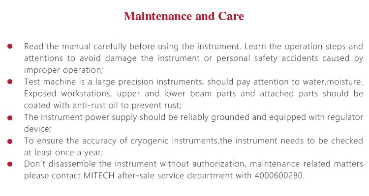 l Don’t disassemble the instrument without authorization, maintenance related matters please contact MITECH after-sale