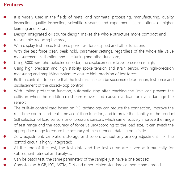 l Built-in controller to ensure that the test machine can be specimen deformation, test force and displacement of the closed-loop control;