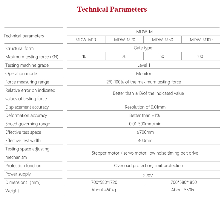 Mitech MDW-M series of micro control wood-based universal testing machine, through the single-chip automatic control motor driving screw movement, can do various of physical and chemical properties of the test for wood-based panels and decorative panels. With built-in controller, AC servo motor, automatic control and data acquisition system, stable performance, strong structure, high reliability, simple operation, high degree of automation, it widely used in the wood-based panels and decorative panels of the internal bond strength, surface bonding strength, tensile strength test, bending test, elastic modulus test, grip force test and plywood shear cut test. It is a necessary professional precision testing equipment for improve production efficiency and save production costs.