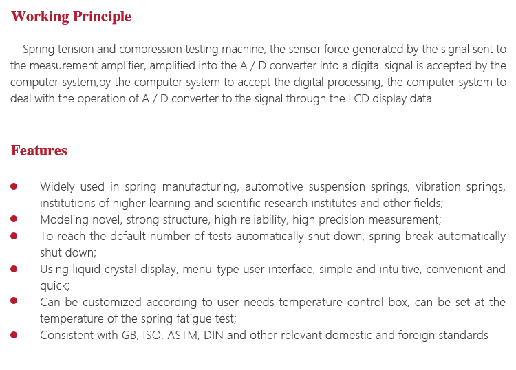 Instrument Featuresl Widely used in spring manufacturing, automotive suspension springs, vibration springs, institutions of higher learning and