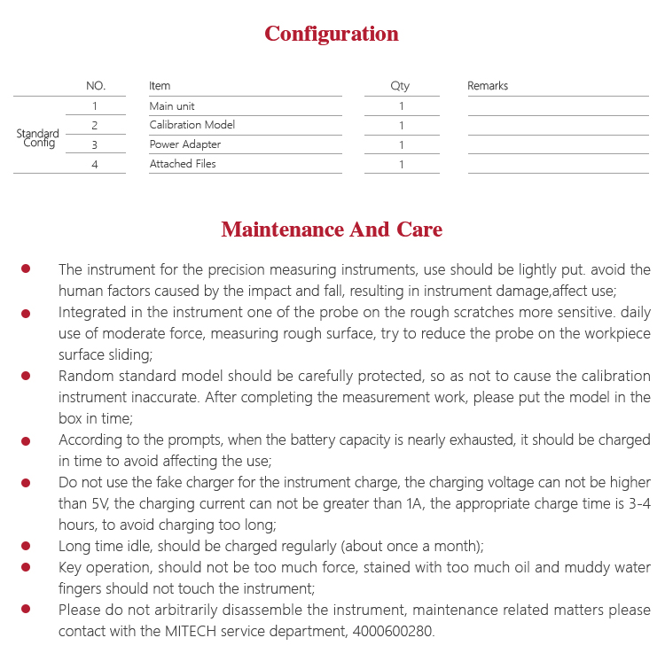 ⑤ The standard model should be carefully protected to avoid precision lose caused by scratch. Please package the model in time after measuring.