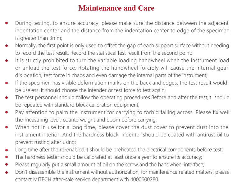 hardness block, indenter should be coated with antirust oil to prevent rusting after using;