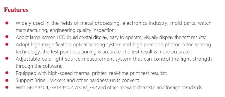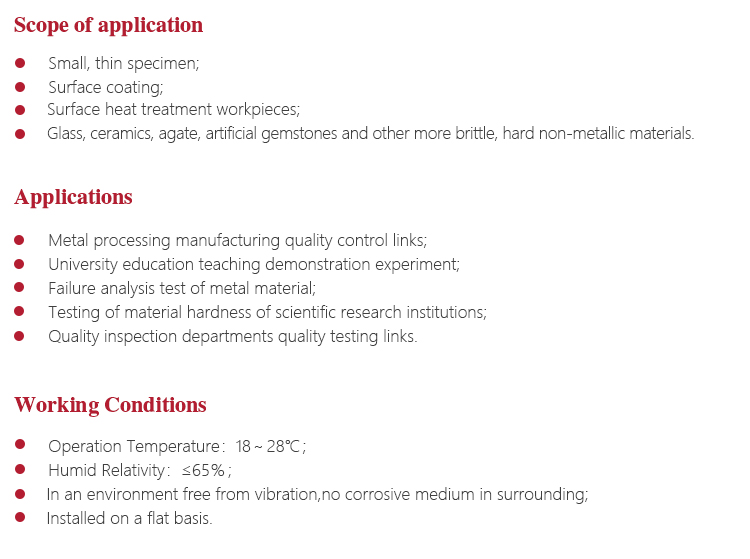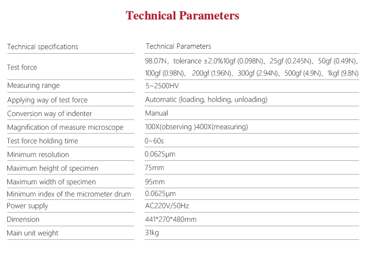 | Measuring range | 5~2500HV |