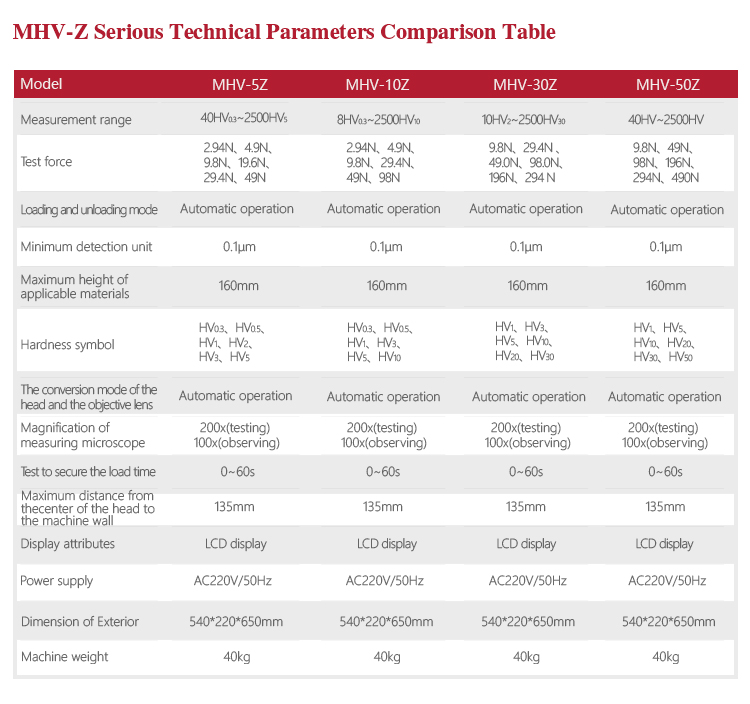 Product OverviewMitech MHV-Z series automatic turret vickers hardness tester, based on the principle that positive quadrangular pyramid diamond indenter presses the surface of the sample to produce indentation.By measuring the diagonal length of the indentation to achieve the measurement of the hardness of the material can be for small specimens, thin specimens, surface coating, heat treatment of the workpiece surface Vickers hardness test. With stable performance, strong structure, high reliability, simple operation, adopt high magnification optical measurement system, adjust the cold light source, photoelectric sensing technology and computer-aided means it has a powerful function. It is widely used in the fields of metal processing, electronics industry, mold parts, watch manufacturing, engineering quality inspection and so on. It is an ideal hardness tester for material research and testing.