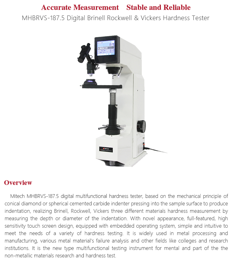 Mitech MHBRVS-187.5 digital multifunctional hardness tester, based on the mechanical principle of conical diamond