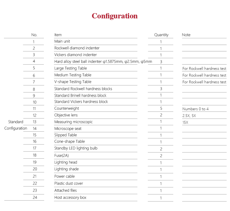 l Consistent with GB/T230, GB/T231, GB/T4340, JJG144-1999, ISO 6508, ASTM E 10, ASTM E92, ASTM E18, ASTM E384, ASTM E103 and other relevant domestic and foreign standards.