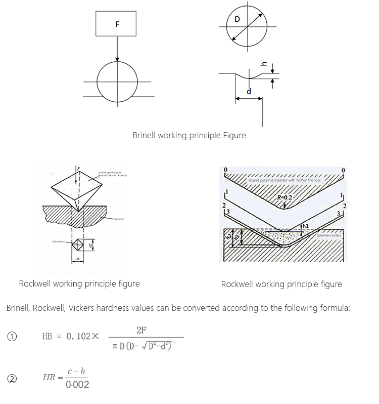 Working PrincipleBrinell hardness test: Test force(F) is on the steel ball with certain diameter(D) , pressed on sample surface. After a period of time, cancel the force. The indentation diameter is get by measuring with micrometer ocular,thus to calculate the average pressure(N/mm2).Then we can get the Brinell hardness.