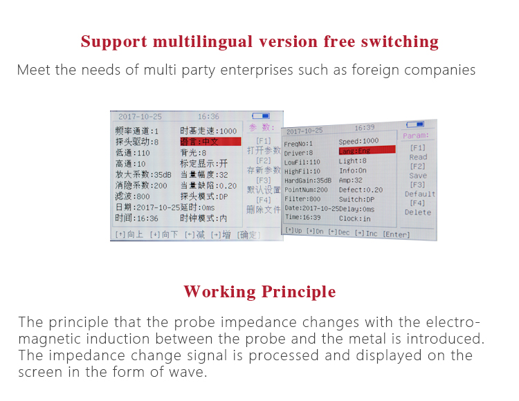 l Using eddy current impedance plane and time base scan display technology, real-time multi-window display with the same