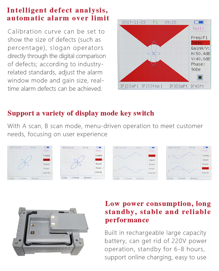 Pipe inspection accuracy 0.3mm through hole to 8db (20mm within the probe)