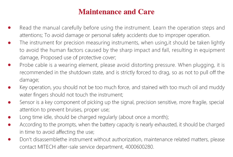 l Don’t disassemblethe instrument without authorization, maintenance related matters, please contact MITECH after-sale