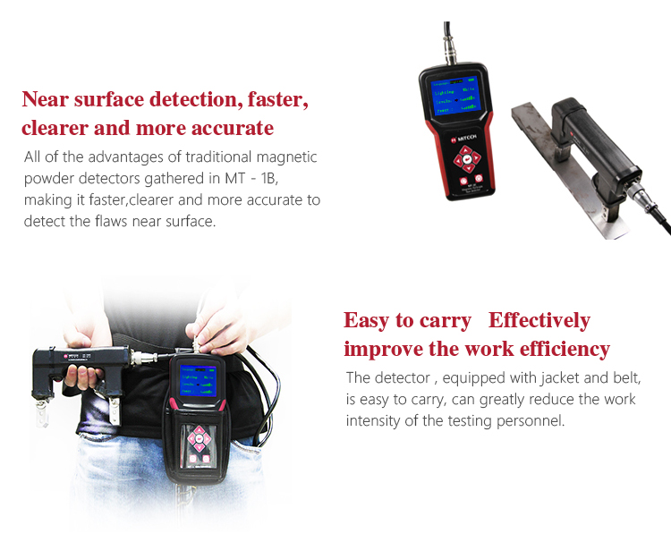 | MITECH magnetic detectors pockets and belts, portable compact, the operator can tilt the instrument across the waist, greatly reducing the labor intensity of the flaws, improve work efficiency, especially for the field, high altitude testing and other special occasions flaw detection. | |