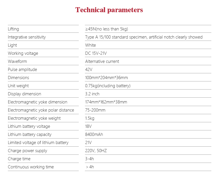 distance: 75-200mm, Electromagnetic yoke Weight: 1.5kg.The use of pulsating power supply technology,