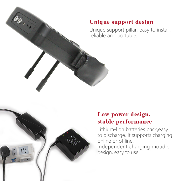 The large capacity lithium battery module is easy to be assembled and disassembled. It can be charged independently but also charged by inserting wire. Its continuously working time is more than 10 hours.