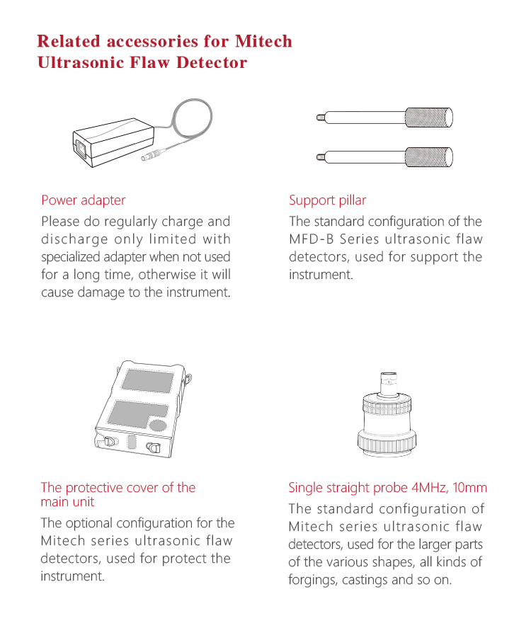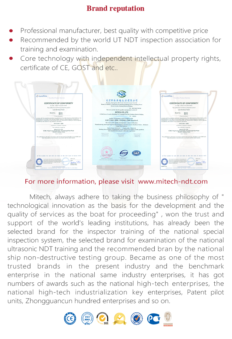 | The Mitechs Ultrasonic flaw detector with customized packing documents has included product certificate, warranty card, product manual and packing list. The packing documents had used the special printed paper. The manual is with graphic design, beautiful, easy to understand, easy to save for a long time. Note: The electronic version of the packing documents for Mitech series products can be downloaded from m.jiu1915.cn. |