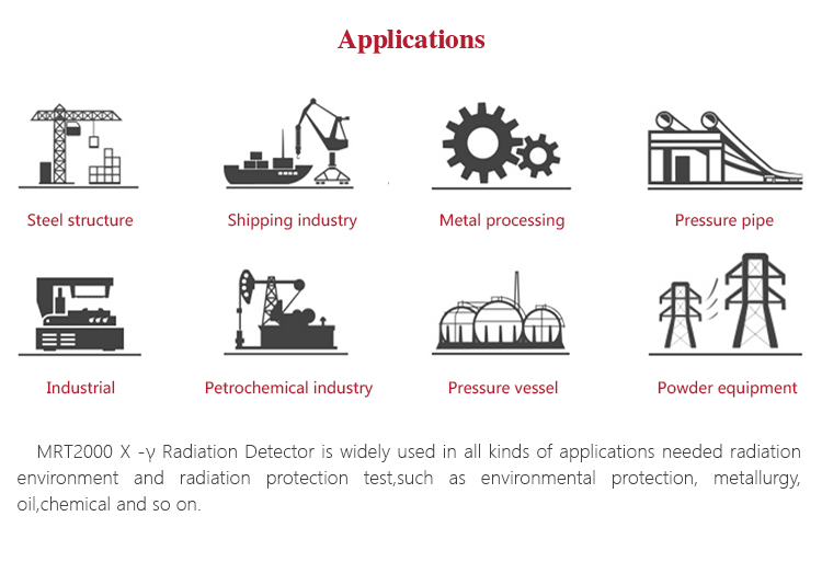 MRT2000 X -γRadiation Detector is widely used in all kinds of applications needed radiation environment and radiation protection test,such as environmental protection, metallurgy, oil,chemical and so on