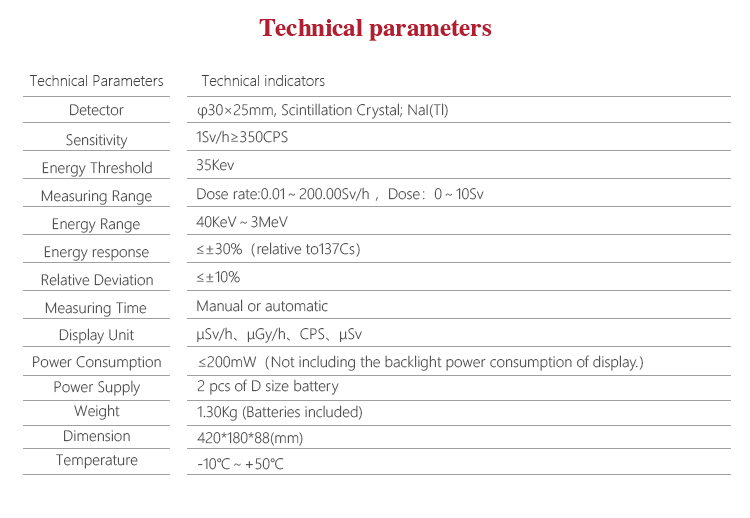 Measurement range Dose rate:0.01~200.00Sv/h ,Dose:0~10Sv