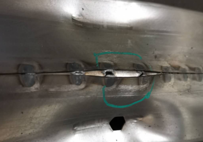 再次進(jìn)行檢測試驗,焊接后焊接情況良好與熔和直徑過小對比,其中檢測焊點數(shù)值較低, 做好標(biāo)記后對焊點進(jìn)行破壞,打開后明顯看到焊點處連接較少,測得熔深直徑為4-5mm,不滿足技術(shù)要求。隨后我們對其他焊點破壞,明顯可以看到測得數(shù)值正常的焊點焊接情況良好,測得熔深直徑為7-8mm。最后確定這一方法可以檢測工件焊點熔深直徑。