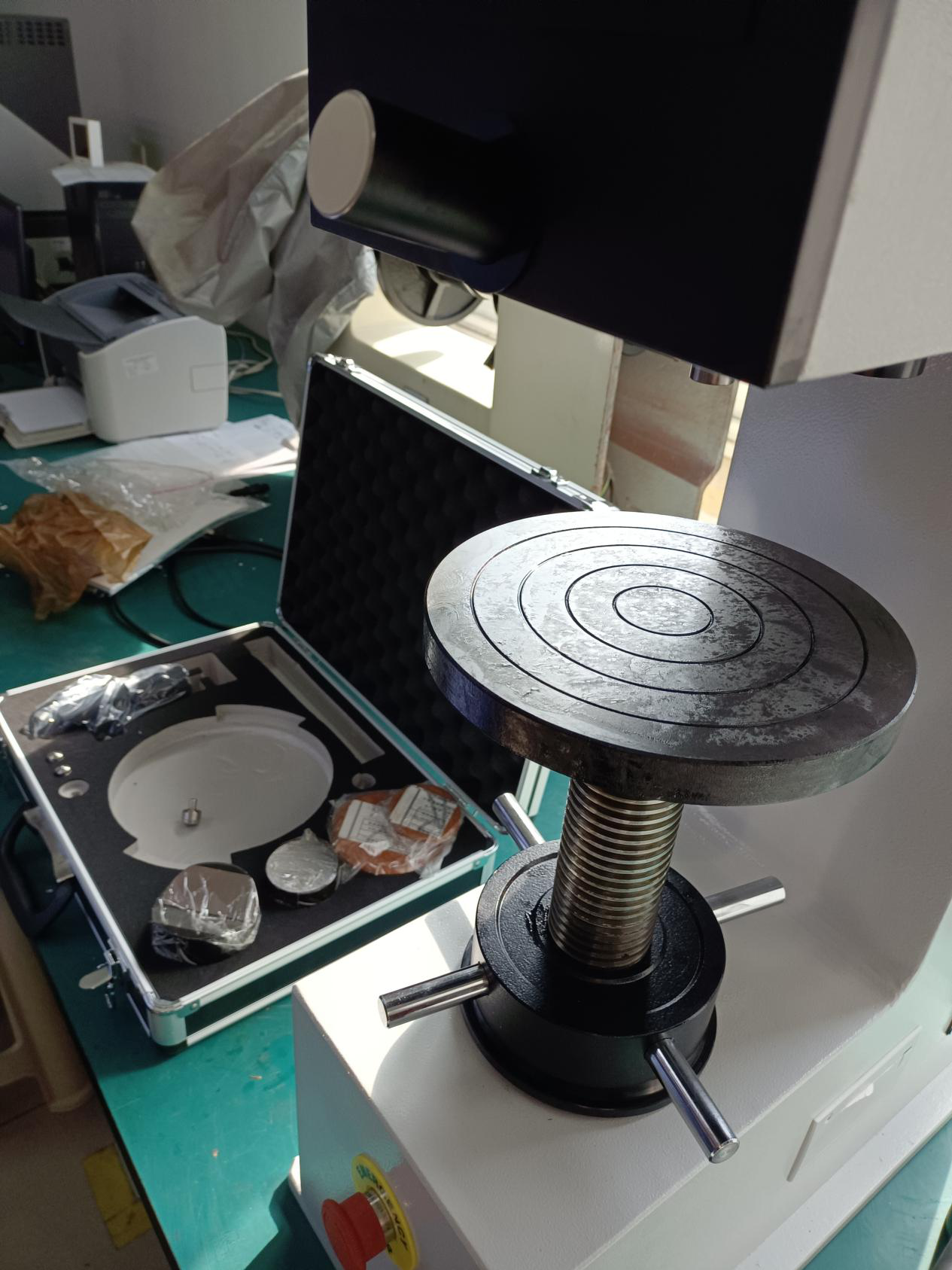 美泰MHBS-3000Z配備了三個(gè)測(cè)量載臺(tái)以適配不同大小、不同形狀工件的測(cè)量。工程師詳細(xì)講解了如何對(duì)儀器進(jìn)行校零,測(cè)量以及打印。首先把工件放在平臺(tái)上,通過手動(dòng)旋轉(zhuǎn)把工件提高到最接近壓頭的位置。點(diǎn)擊啟動(dòng)按鈕,儀器會(huì)自動(dòng)運(yùn)行加荷,保荷和卸荷,卸荷完成后,塔臺(tái)自動(dòng)轉(zhuǎn)動(dòng),將測(cè)量物鏡轉(zhuǎn)到待測(cè)壓痕正上方,通過測(cè)量目鏡測(cè)量出壓痕直徑,D1\D2,點(diǎn)擊測(cè)量按鈕,儀器自動(dòng)測(cè)量出被測(cè)工件的布氏硬度,并自動(dòng)轉(zhuǎn)化出所對(duì)應(yīng)的洛氏、維氏等硬度值。