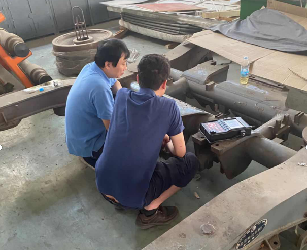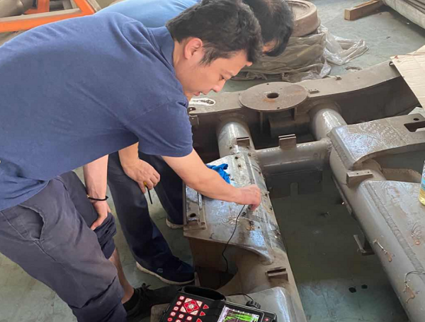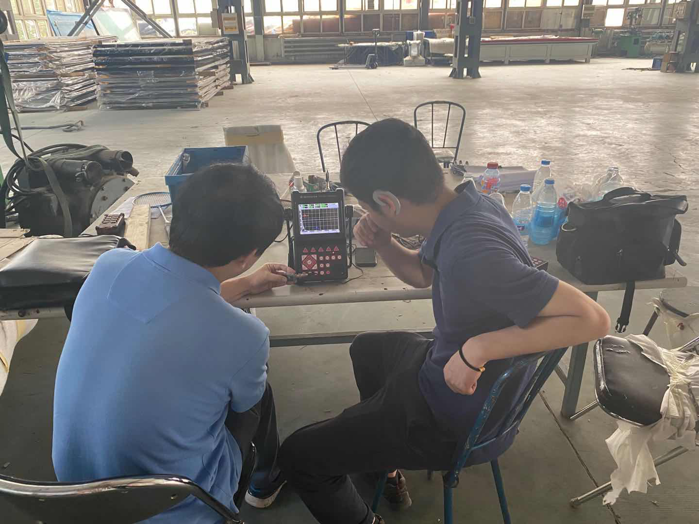2020年8月26日,北京美泰科儀協(xié)同北京某大學(xué)教授一起來(lái)到北京某地鐵運(yùn)營(yíng)公司進(jìn)行現(xiàn)場(chǎng)探傷試驗(yàn),為地鐵的無(wú)損檢測(cè)工作設(shè)計(jì)實(shí)施方案。目前在役地鐵要求每滿5年進(jìn)行一次全面維檢,主要檢測(cè)部件是地鐵轉(zhuǎn)向架等關(guān)鍵部件,檢測(cè)部位有轉(zhuǎn)向架與電機(jī)、減速箱連接處板材的焊縫等?,F(xiàn)有檢測(cè)手段是將相關(guān)配件從裝向架上拆除后,對(duì)轉(zhuǎn)向架進(jìn)行脫漆處理,然后用磁粉探傷儀對(duì)焊縫進(jìn)行探傷。由于當(dāng)前檢測(cè)手段只能對(duì)焊縫表面進(jìn)行檢測(cè),特邀請(qǐng)美泰技術(shù)工程師協(xié)助現(xiàn)場(chǎng)演示并探討超聲波探傷儀對(duì)焊縫檢測(cè)的具體方案。