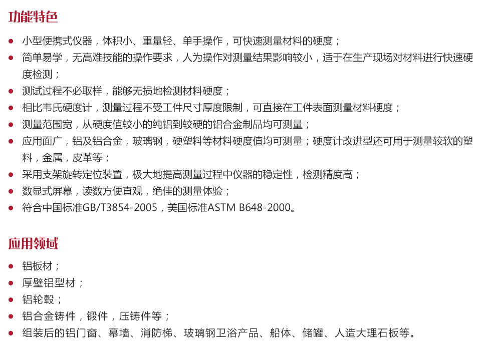 測量范圍寬,從硬度值較小的純鋁到較硬的鋁合金制品均可測量;