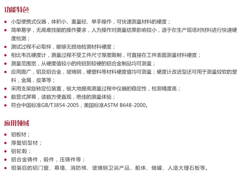 測量范圍寬,從硬度值較小的純鋁到較硬的鋁合金制品均可測量;