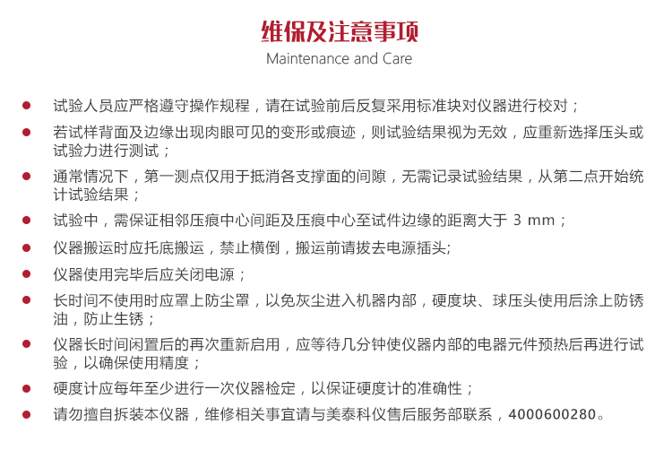 儀器的保養(yǎng)與維護試驗人員應嚴格遵守操作規(guī)程,請在試驗前后反復采用標準塊對儀器進行校對;
