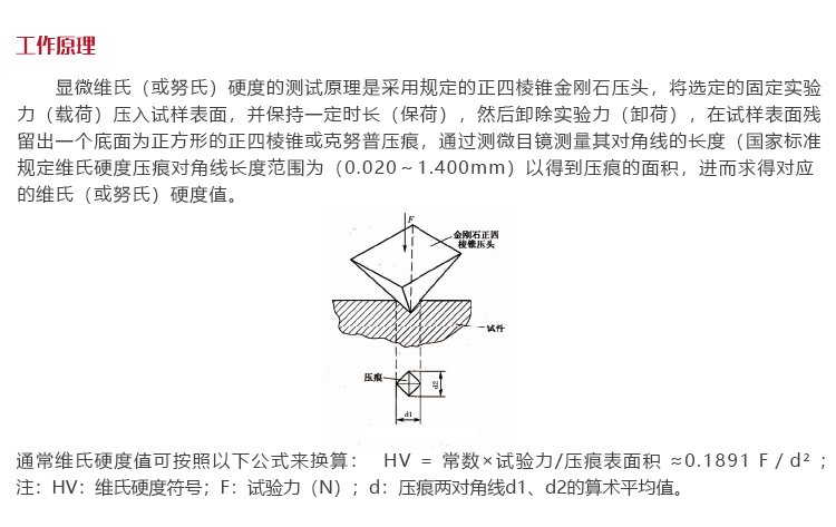 HV = 常數(shù)×試驗力/壓痕表面積 ≈0.1891 F/d2 ;