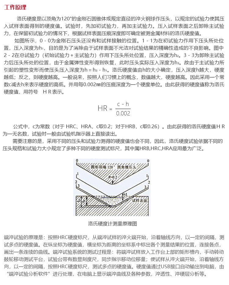 公式中,c為常數(shù)(對(duì)于 HRC、HRA,c取0.2;對(duì)于HRB,c取0.26)。由此獲得的洛氏硬度值HR為一無(wú)名數(shù),試驗(yàn)時(shí)一般由試驗(yàn)機(jī)指示器上直接讀出。