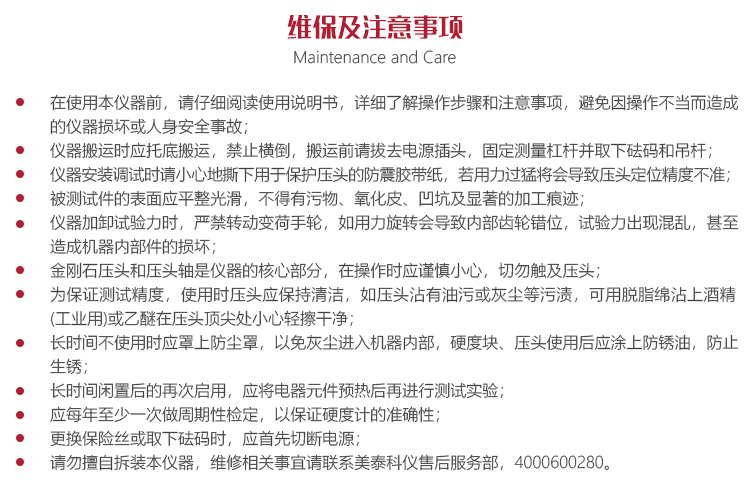 長時間不使用時應(yīng)罩上防塵罩,以免灰塵進入機器內(nèi)部,硬度塊、壓頭使用后應(yīng)涂上防銹油,防止生銹;