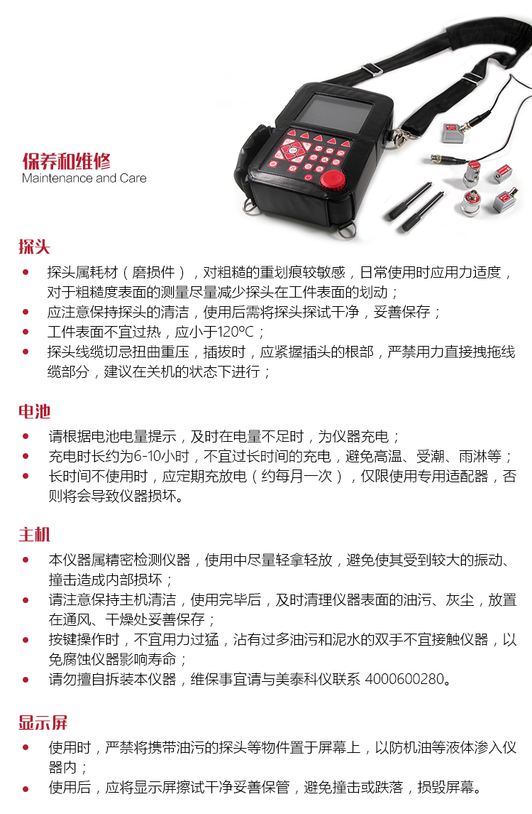| 美泰超聲波探傷儀附有專用的隨機裝箱資料。包括產(chǎn)品合格證、保修卡、產(chǎn)品說明書、裝箱清單。隨機資料采用專用的銅版紙印制,說明書圖文設(shè)計,美觀、易懂、便于長久保存。注:美泰品牌系列產(chǎn)品的隨機資料均可登陸m.jiu1915.cn下載電子版。 | |