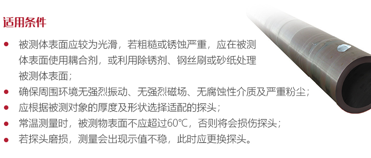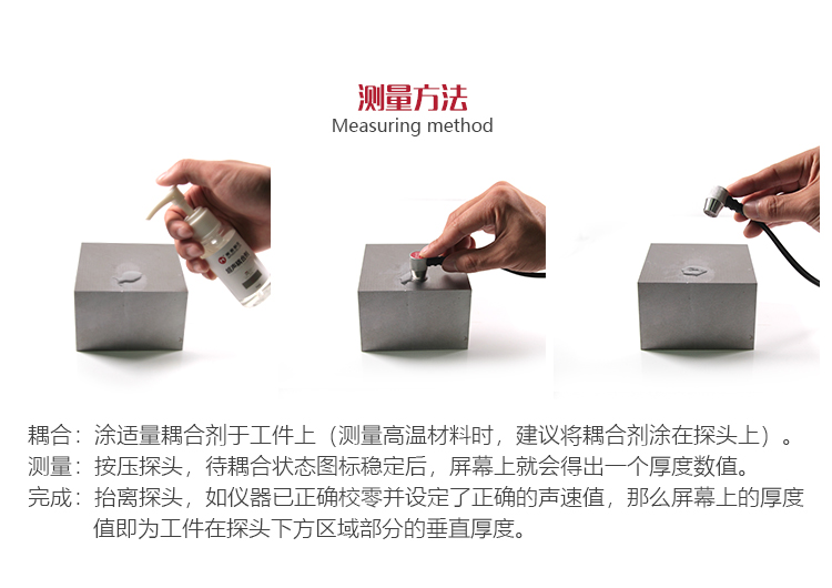 若被測體表面有大量耦合劑時,當(dāng)探頭離開被測體表面時,耦合劑會引起誤測。因此測量結(jié)束時,應(yīng)迅速將探頭移開被測體表面。