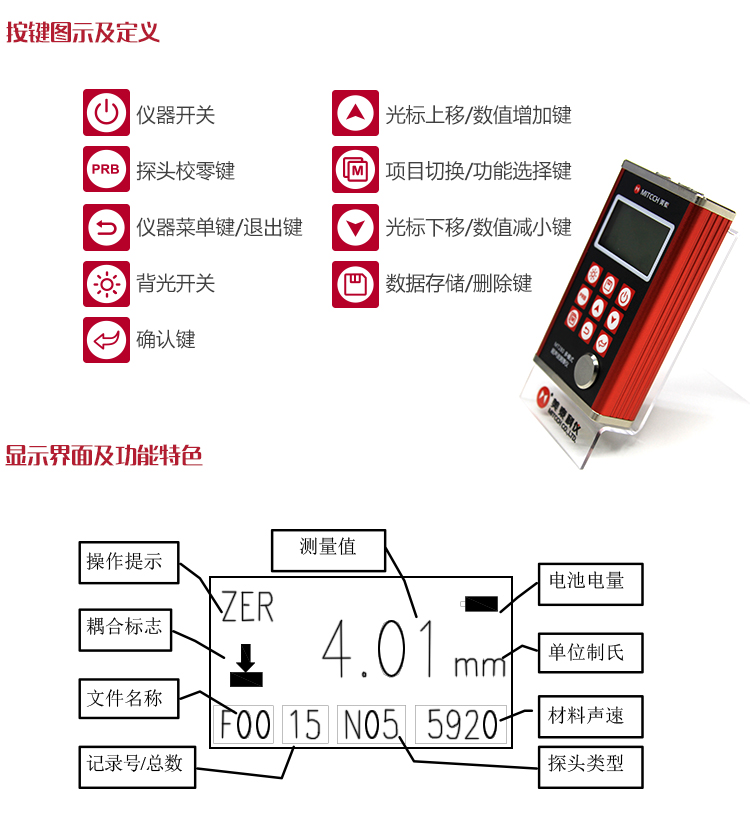 功能用途適合測量金屬(如鋼、鑄鐵、鋁、銅等)、塑料、陶瓷、玻璃、玻璃纖維及其他任何超聲波的良導(dǎo)體的厚度