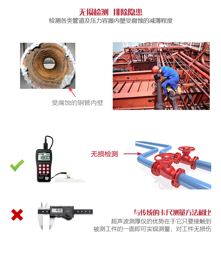 功能用途適合測(cè)量金屬(如鋼、鑄鐵、鋁、銅等)、塑料、陶瓷、玻璃、玻璃纖維及其他任何超聲波的良導(dǎo)體的厚度