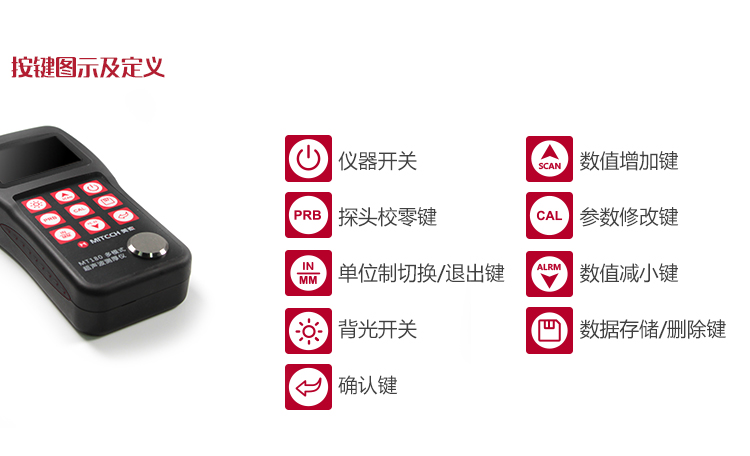 | 存儲(chǔ) | 可存儲(chǔ)20組(每組最多100個(gè)測(cè)量值)厚度測(cè)量數(shù)據(jù) |
