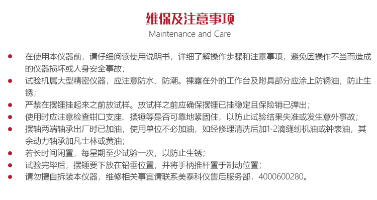 使用時(shí)應(yīng)注意檢查鉗口支座、擺錘等是否可靠地緊固住,以防止試驗(yàn)結(jié)果失準(zhǔn)或發(fā)生意外事故;