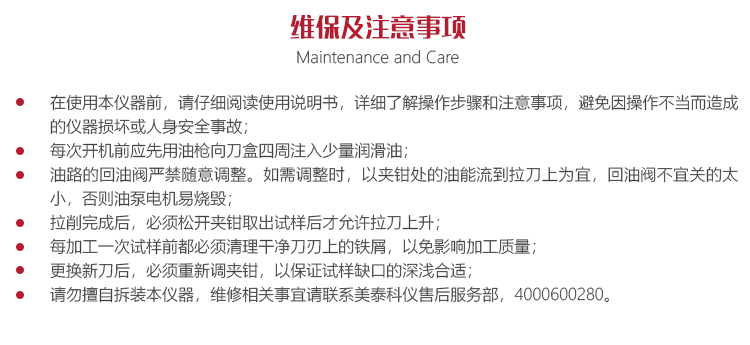 每加工一次試樣前都必須清理干凈刀刃上的鐵屑,以免影響加工質(zhì)量;