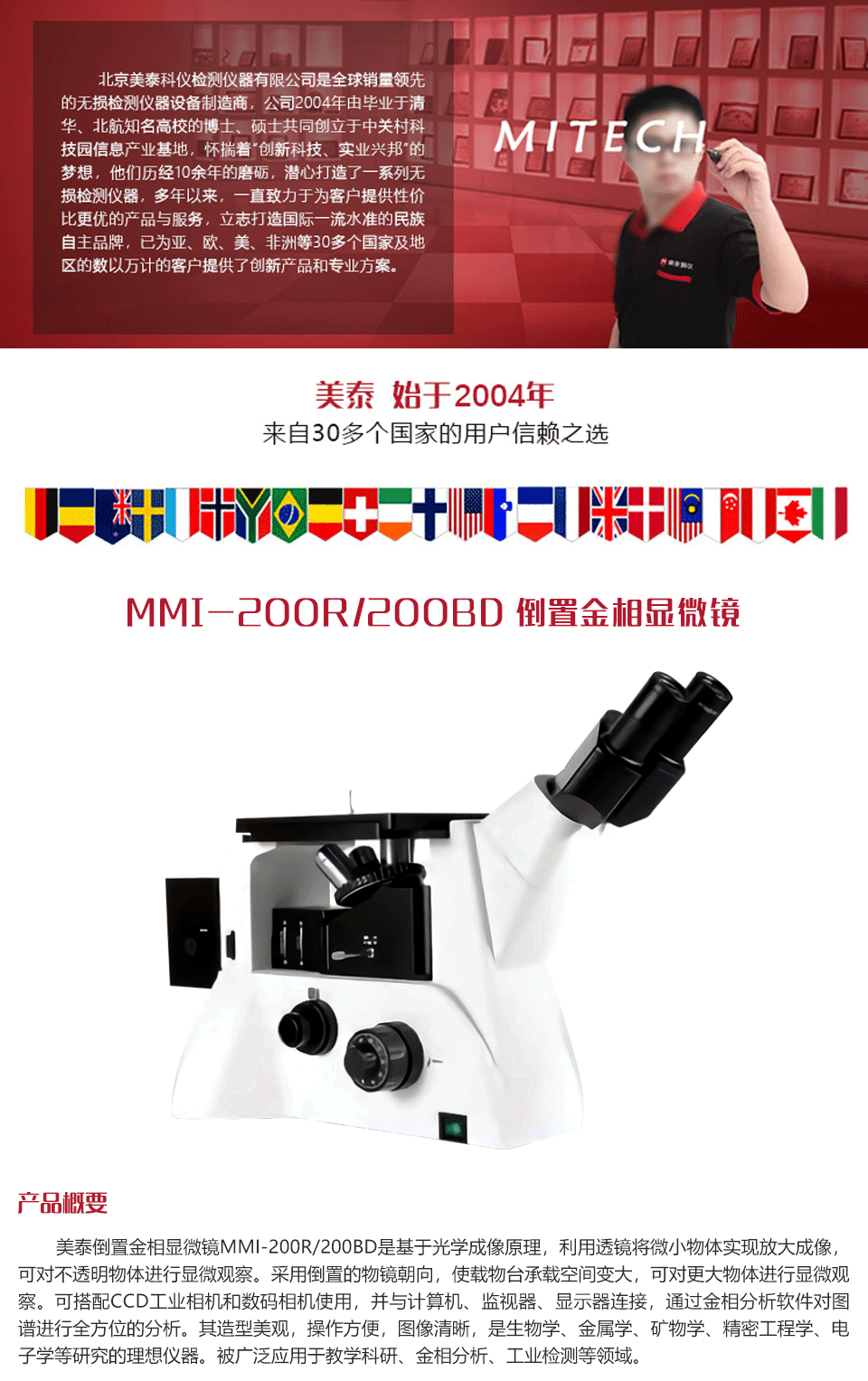 產(chǎn)品概述美泰倒置金相顯微鏡MMI-200R/200BD是基于光學(xué)成像原理,利用透鏡將微小物體實(shí)現(xiàn)放大成像,可對不透明物體進(jìn)行顯微觀察。采用倒置的物鏡朝向,使載物臺承載空間變大,可對更大物體進(jìn)行顯微觀察。可搭配CCD工業(yè)相機(jī)和數(shù)碼相機(jī)使用,并與計(jì)算機(jī)、監(jiān)視器、顯示器連接,通過金相分析軟件對圖譜進(jìn)行全方位的分析。其造型美觀,操作方便,圖像清晰,是生物學(xué)、金屬學(xué)、礦物學(xué)、精密工程學(xué)、電子學(xué)等研究的理想儀器。被廣泛應(yīng)用于教學(xué)科研、金相分析、工業(yè)檢測等領(lǐng)域。