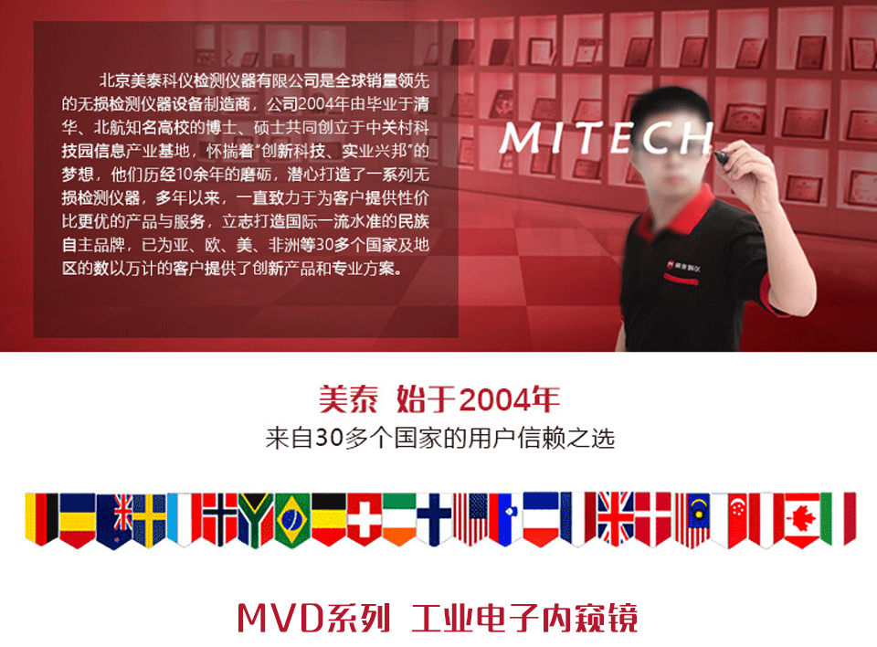 產品概述美泰MVD系列工業(yè)內窺鏡,基于CMOS圖像傳感器成像原理,能夠對人眼無法進行直接觀察的區(qū)域進行拍攝成像,高清顯示,從而實現無損檢測。美泰MVD系列內窺鏡是一款高精度視頻電子工業(yè)內窺鏡,采用彩色液晶顯示器以及高集成度CMOS圖像傳感器保證了視頻內窺鏡影像的清晰、逼真;功耗小,信號傳輸速度快,攜帶方便,操作簡易。可在不拆卸或破壞組裝及停止設備運行的情況下對各種工業(yè)管路或復雜狹小的設備內部空間的腐蝕、裂紋、焊縫、異物、磨損及零部件內部的加工等情況進行全面細致的檢測。被廣泛應用于航天航空、石油化工、機械鑄造、國防軍事、電力生產、汽車交通等眾多領域,是工業(yè)設備檢測和維修等環(huán)節(jié)中重要的探測監(jiān)控儀器。