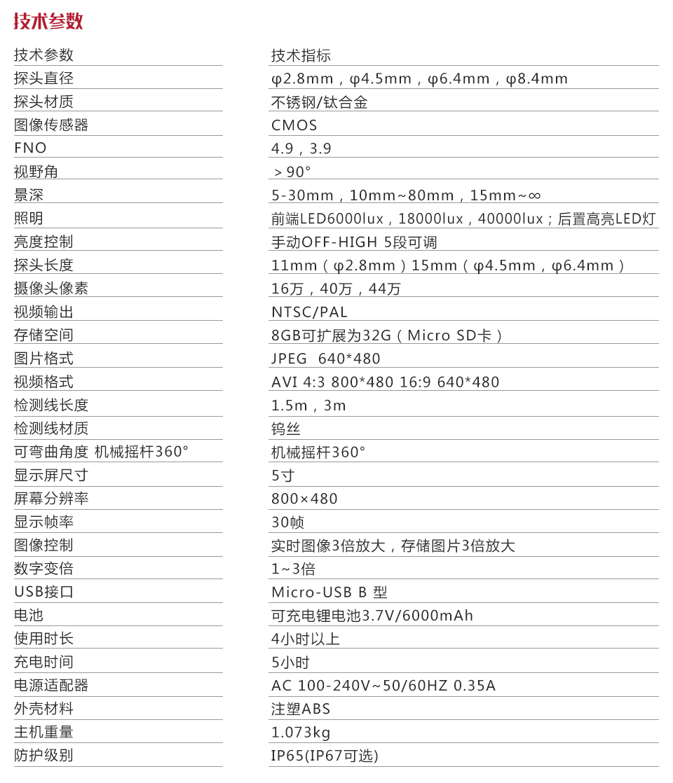 | 探頭直徑 | φ2.8mm,φ4.5mm,φ6.4mm,φ8.4mm |