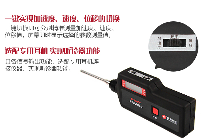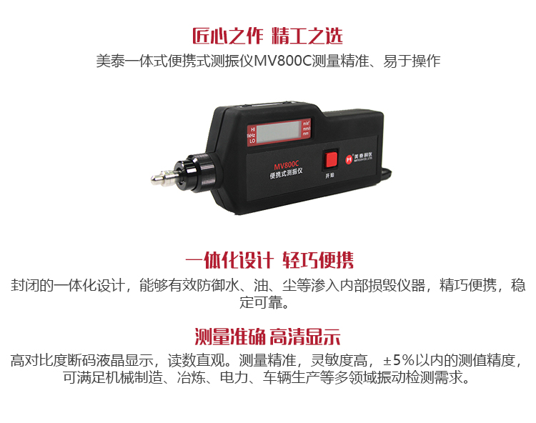 產(chǎn)品概述美泰袖珍一體化測振儀MV800C系列是由壓電式傳感器和數(shù)字顯示電路組成的手持式測振儀表,主要用于測量各種旋轉(zhuǎn)機(jī)械的振動加速度、速度和位移。MV800C系列分兩種型號MV800C-5(頻響范圍:5Hz~10KHz)和MV800C-10(頻響范圍:10Hz~10KH),可滿足常規(guī)測振使用需求以及低頻振動測量需求。該產(chǎn)品測量范圍廣,顯示直觀、一體化的設(shè)計(jì)體積小、重量輕,測量攜帶方便,特別適用于野外無電源的現(xiàn)場作業(yè)及高空作業(yè),大大減少工作人員的工作強(qiáng)度,提高工作效率。