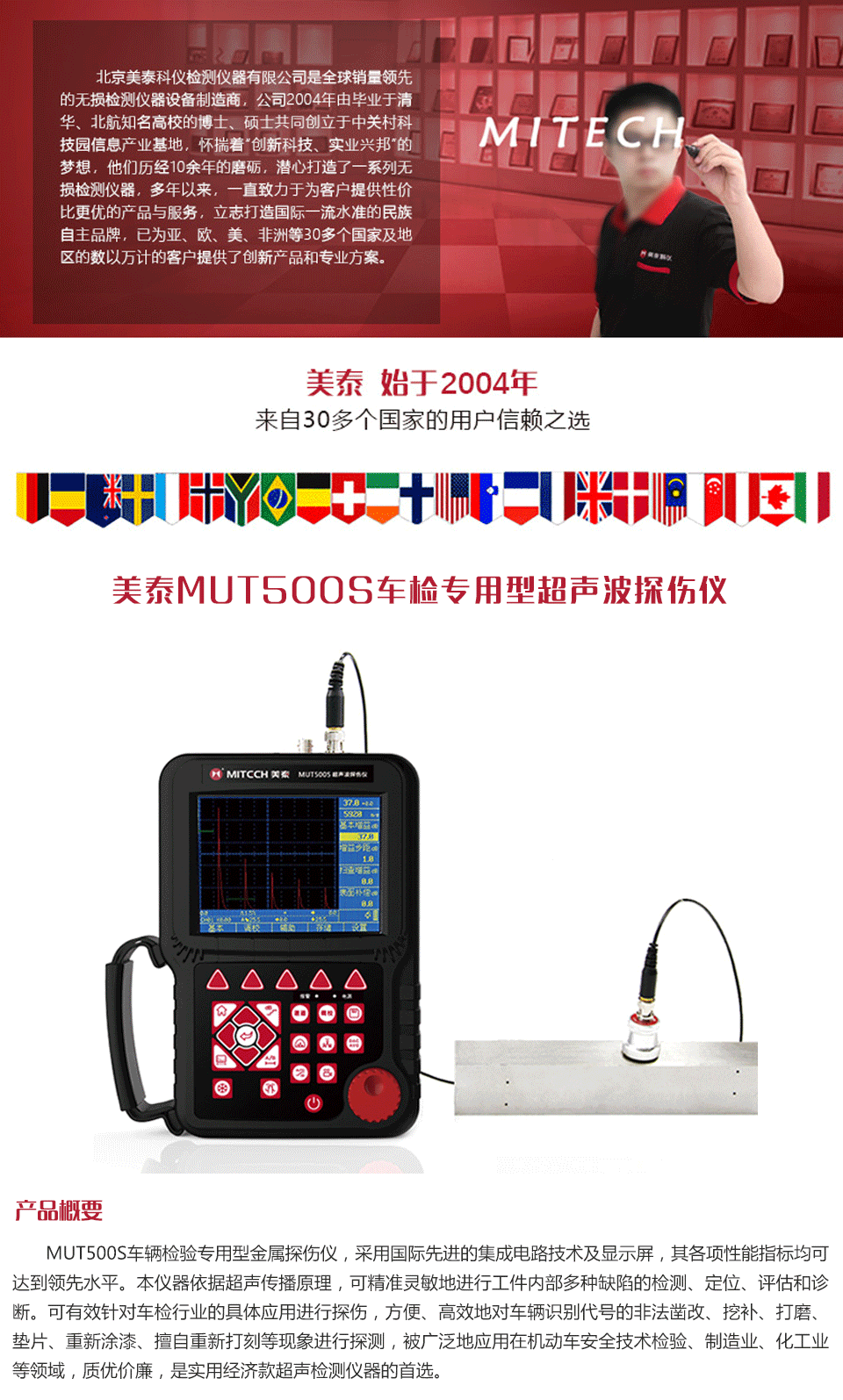 產(chǎn)品概述MUT500S車輛檢驗專用型金屬探傷儀,采用國際先進(jìn)的集成電路技術(shù)及顯示屏,其各項性能指標(biāo)均可達(dá)到領(lǐng)先水平。本儀器依據(jù)超聲傳播原理,可精準(zhǔn)靈敏地進(jìn)行工件內(nèi)部多種缺陷的檢測、定位、評估和診斷??捎行п槍嚈z行業(yè)的具體應(yīng)用進(jìn)行探傷,方便、高效地對車輛識別代號的非法鑿改、挖補、打磨、墊片、重新涂漆、擅自重新打刻等現(xiàn)象進(jìn)行探測,被廣泛地應(yīng)用在機動車安全技術(shù)檢驗、制造業(yè)、化工業(yè)等領(lǐng)域,質(zhì)優(yōu)價廉,是實用經(jīng)濟(jì)款超聲檢測儀器的首選。