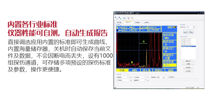 | 探傷標(biāo)準(zhǔn) | 內(nèi)置各行業(yè)常用探傷標(biāo)準(zhǔn),直接調(diào)用,方便、快捷 |