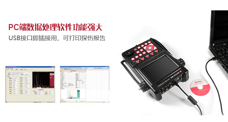 100組探傷參數(shù)通道,可存儲(chǔ)10000幅探傷回波信號(hào)及參數(shù);USB2.0高速通訊傳輸接口