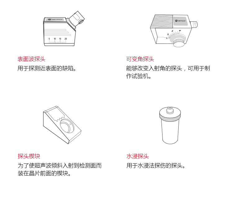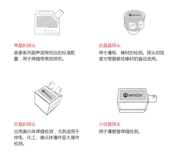 | 探頭類型 | 直探頭、斜探頭、雙晶探頭、穿透探頭 |