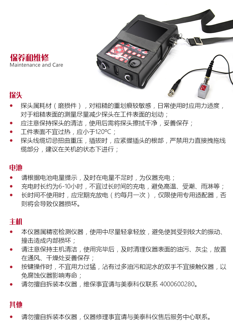 | 美泰超聲波探傷儀附有專用的隨機(jī)裝箱資料。包括產(chǎn)品合格證、保修卡、產(chǎn)品說(shuō)明書(shū)、裝箱清單。隨機(jī)資料采用專用的銅版紙印制,說(shuō)明書(shū)圖文設(shè)計(jì),美觀、易懂、便于長(zhǎng)久保存。注:美泰品牌系列產(chǎn)品的隨機(jī)資料均可登陸m.jiu1915.cn下載電子版。 | |