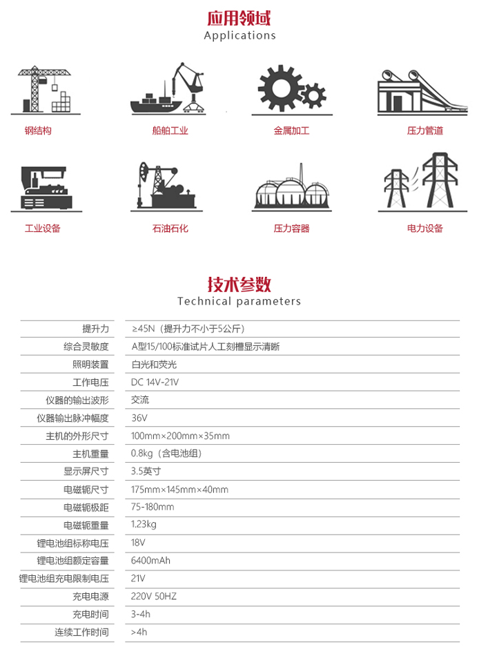 | 電磁軛尺寸 | 175mm×145mm×40mm |
