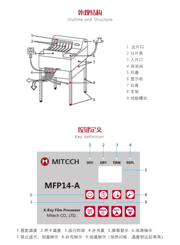 功能用途MFP14-A全自動(dòng)膠片沖洗機(jī)是全自動(dòng)運(yùn)行的臺(tái)式?jīng)_片機(jī),膠片通過(guò)顯影、定影、水洗、烘干四個(gè)步驟自動(dòng)實(shí)現(xiàn)快速、