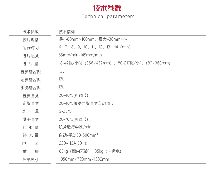 | 膠片規(guī)格 | 最小80mm×100mm,最大430mm×∞; |